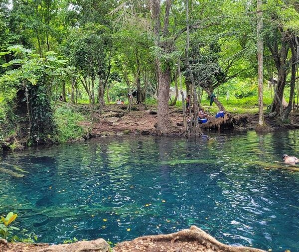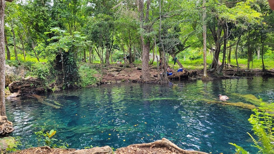 Comienza visitando Hoyo Claro, un hermoso cenote de aguas cristalinas rodeado de naturaleza, ideal para nadar y tomar fotos espectaculares.