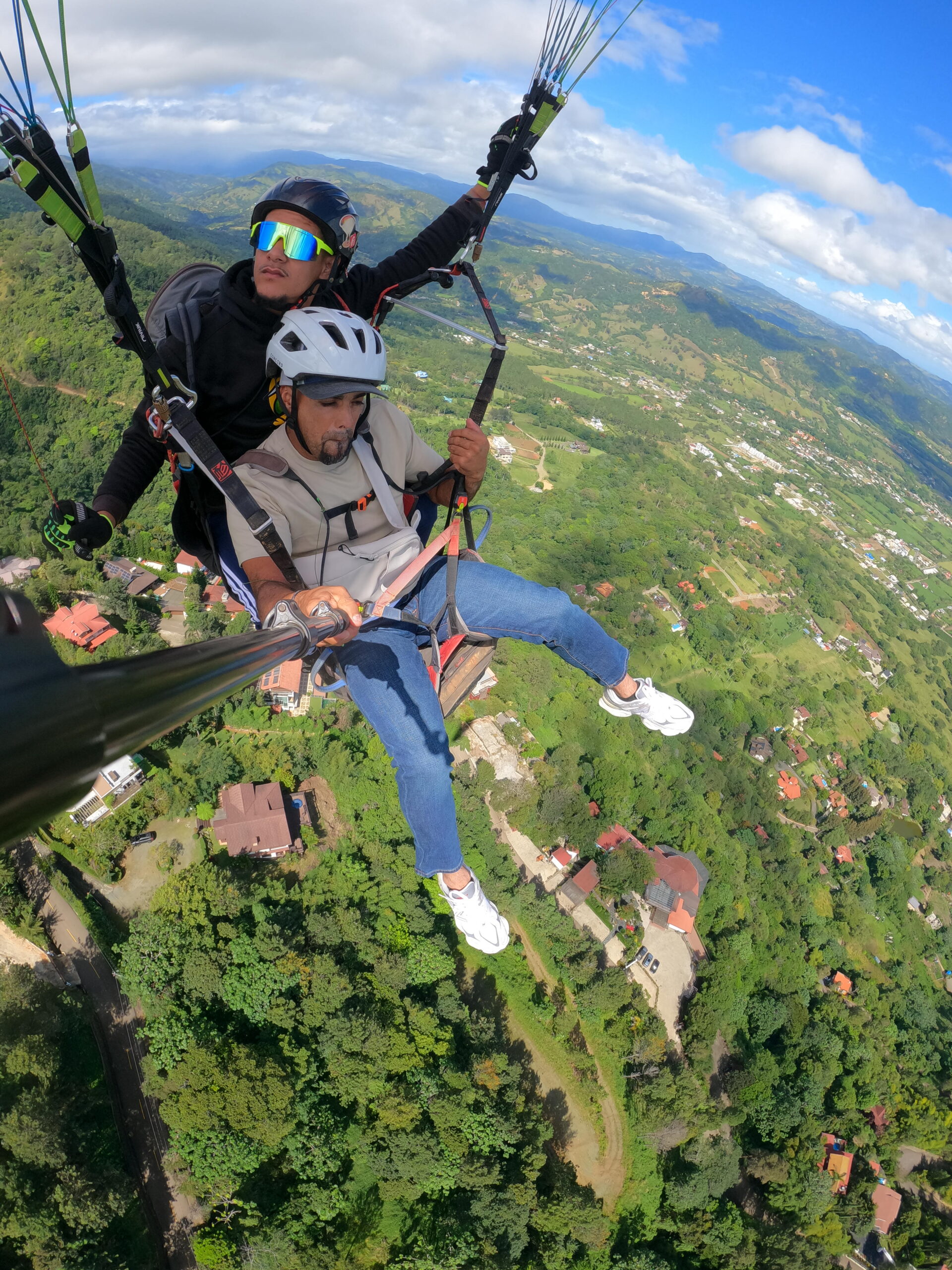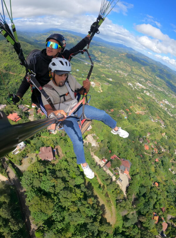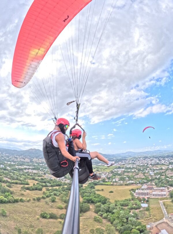 Allí realizarás un vuelo en parapente biplaza con piloto certificado, volando sobre valles, ríos y montañas con vistas panorámicas espectaculares.