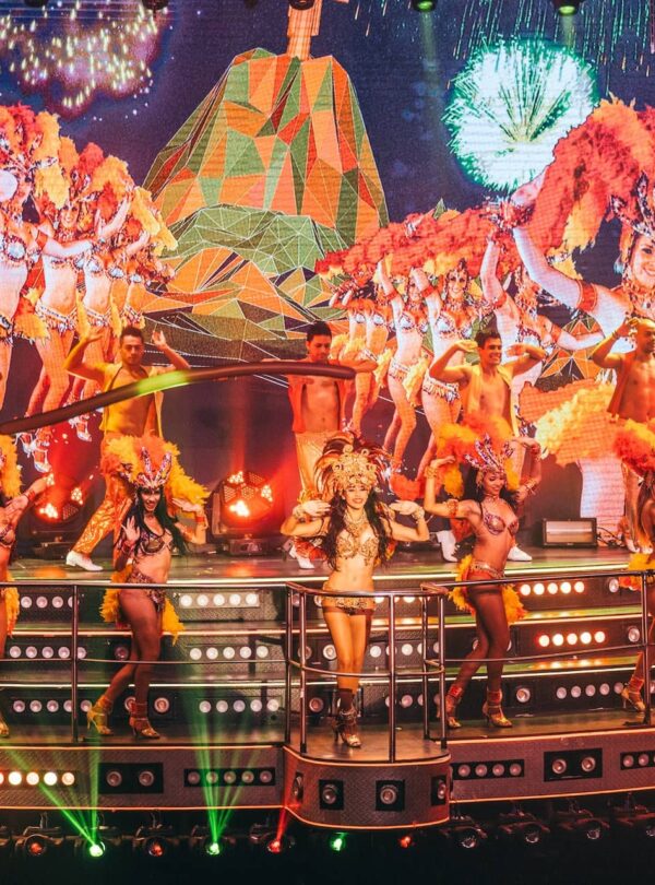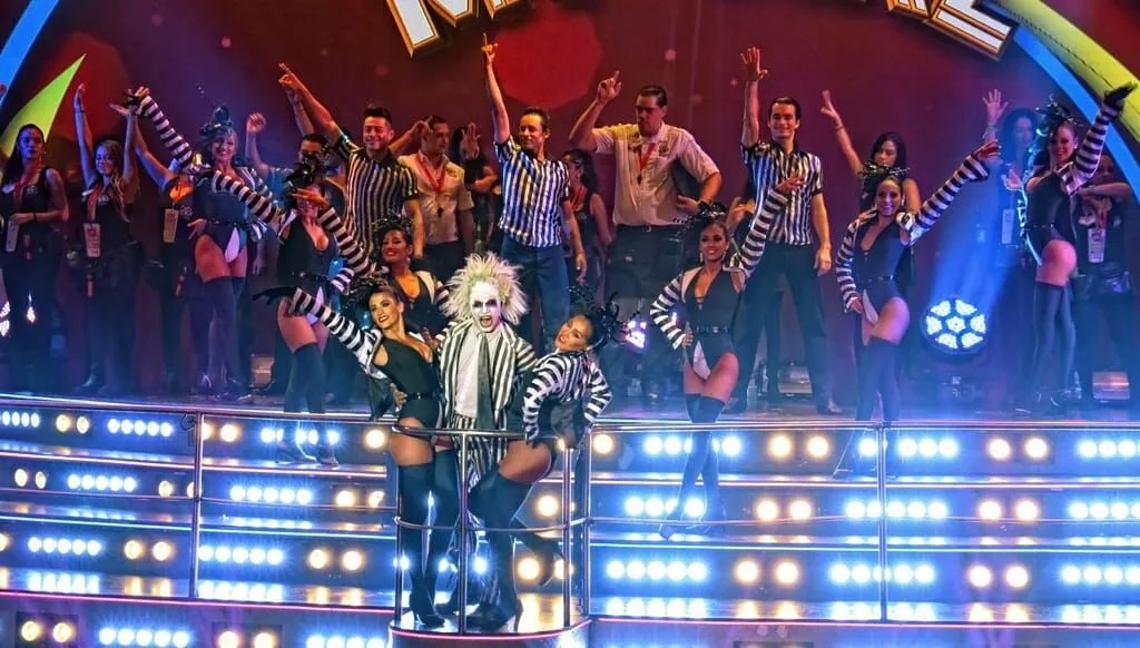 Este espectáculo combina actuaciones en vivo, imitaciones de artistas como Michael Jackson o Beyoncé, acrobacias aéreas, efectos visuales impresionantes y una atmósfera electrizante.